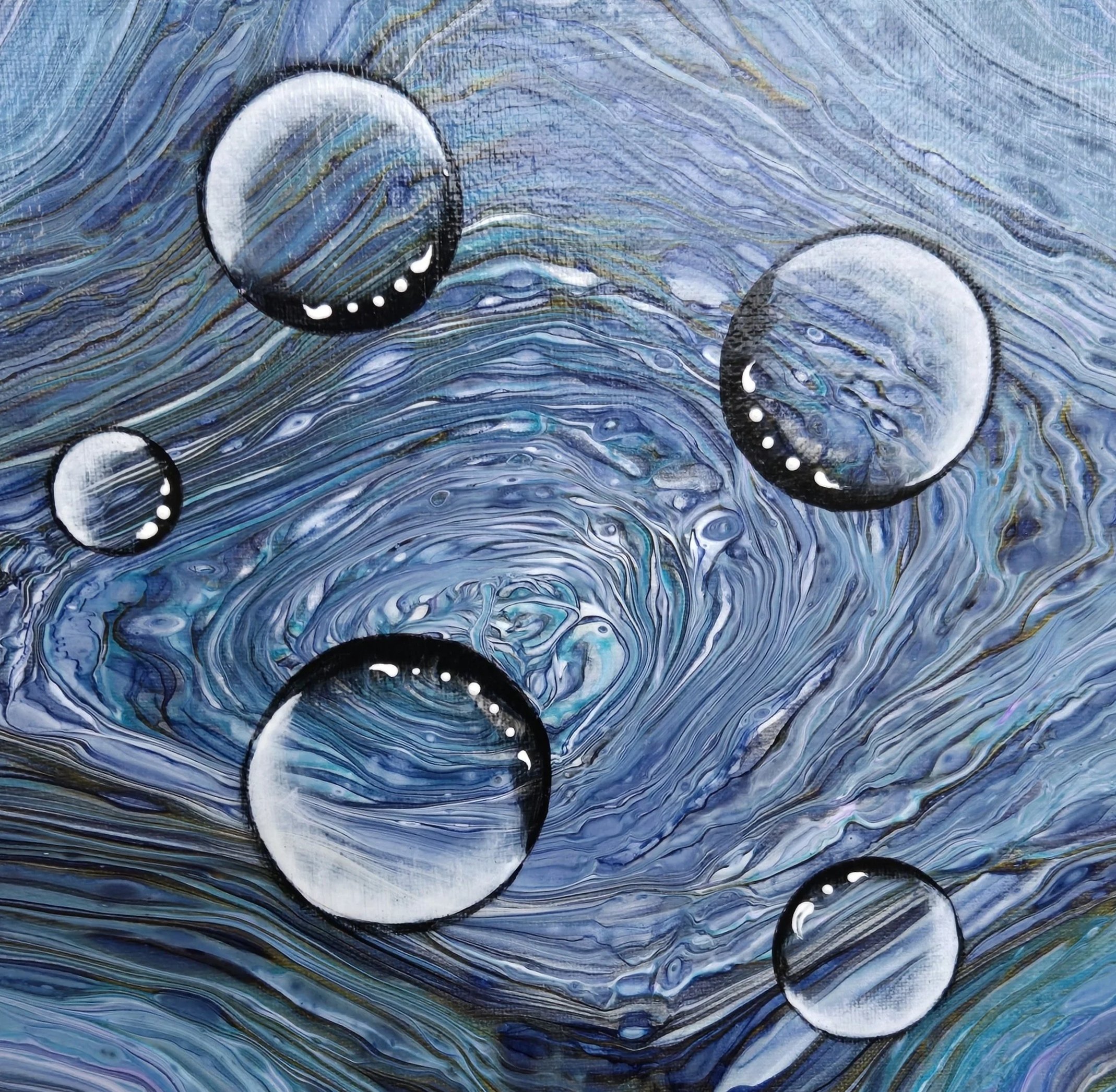I have been working in Acrylic Fluid Art for the past 8 years. I have been inspired by many artists world wide. No two pieces I create are ever the same and are created through an imagination that is limitless. The use of everyday objects when creating my art, such pop bottles, strainers and hair dryers can make something ordinary into something extraordinary. Bubbles in the rainbow pallet are my favourite.